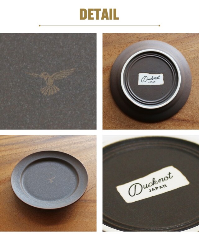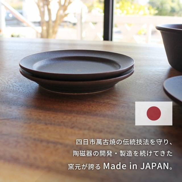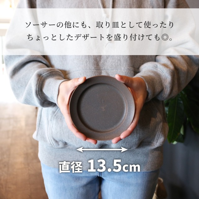 マットな手触りとシックな雰囲気を楽しめるカップソーサー。 ソーサーの他にも、取り皿として使ったりちょっとしたデザートを盛り付けても◎。 四日市萬古焼の伝統技法を守り、陶磁器の開発・製造を続けてきた窯元が誇るMade in JAPAN。 もちろん電子レンジ・食洗器・オーブン使用可能です。 ※金色の部分は耐熱の塗料を使用しておりますが、電子レンジ等の使用を重ねるうちに塗装が薄くなる場合がございます。予めご了承くださいませ。 |
